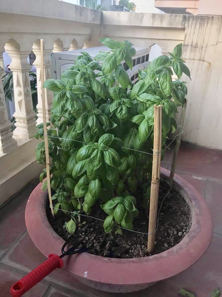 ✅ Thu hoạch: Ngắt lá to hoặc ngọn Basil trước nách lá để lá con phát triển